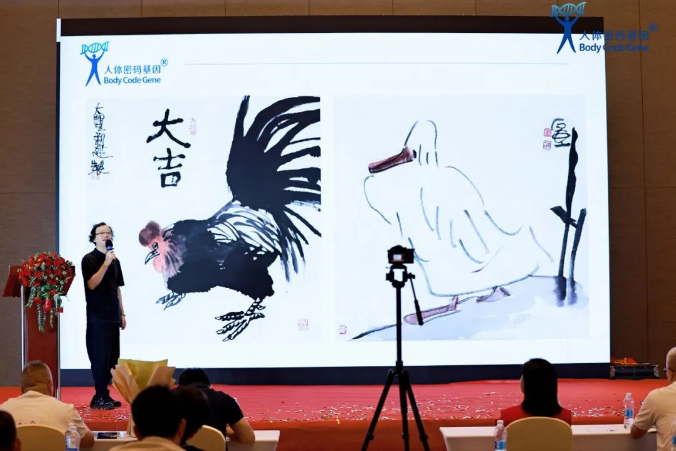 接着是由成都师范学院美术学院教授、学术院长,省人民政府文史研究馆特约研究员、中国书法家协会、中国美术家协会会员韩安荣老师分享《基因与绘画艺术》。