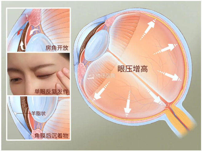 发作时会感觉视物模糊,可能出现眼红、眼胀、眼痛,但很少出现像急性闭角型青光眼发作时头疼、恶心、呕吐等症状,发作间隙时眼压也正常,因此常让人认为是简单的视疲劳。
